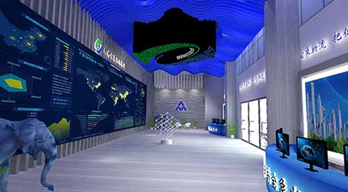 展厅颜色:蓝色、 白色、 红色、 黄色、 绿色、 五种色彩。蓝色代表:科技、信息。白色衬托色,红黄代表党建元素。绿色代表:青春朝气磅礴。